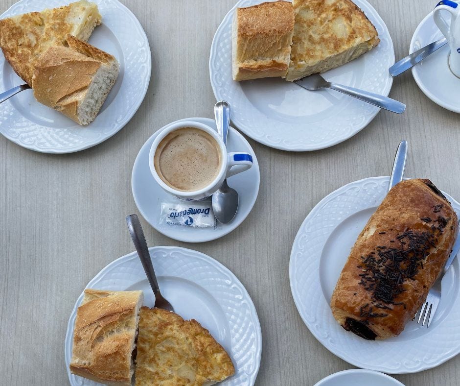 An hour or two later we’d be found, hunched around a small table outside a cafe, our bags lined up along a wall or kerb, fellow pilgrims around us, warming our hands on our first coffee of the day and a piece of tortilla, or some delicious Galician thick, white toast with mermelada.